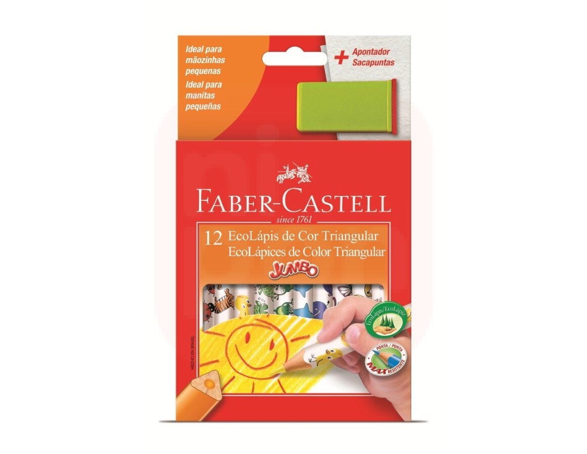 2. Lápis de Cor Triangular Jumbo 12 cores + Apontador - Faber-Castell