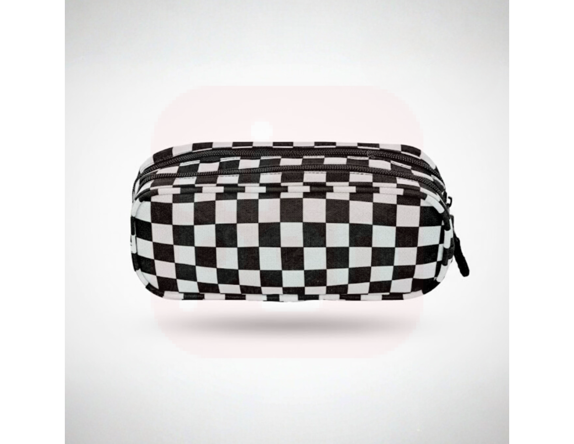 Estojo 2 Compartimentos Xadrez Preto e Branco - Sestini