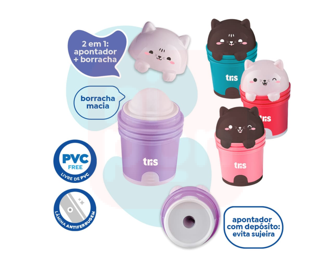 APONTADOR COM DEPÓSITO + BORRACHA KITTY – TRIS