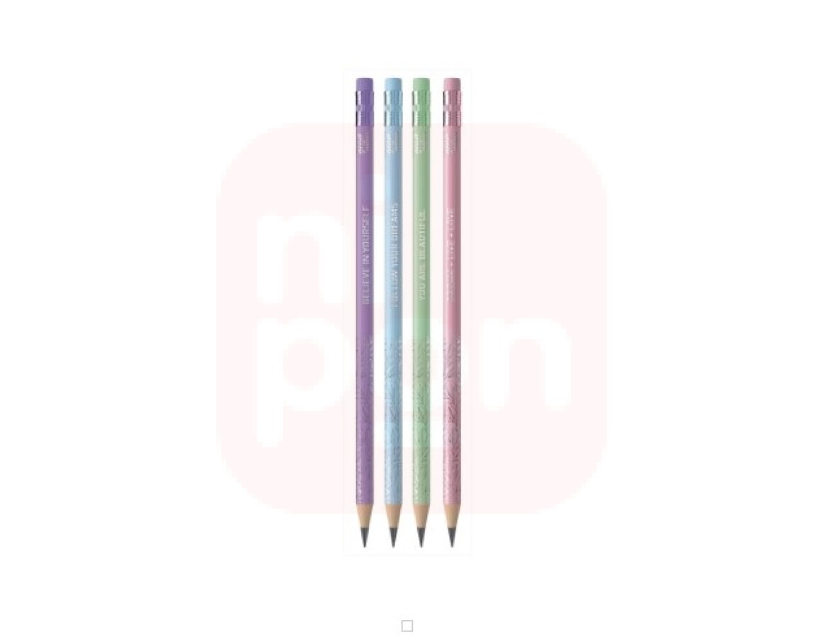 Com frases positivas pra você carregar no seu estojo, em um lápis com acabamento fosco + efeito metalizado! Lápis de madeira reflorestada, com traço HB, corpo redondo e borracha no topo. Cores sortidas.